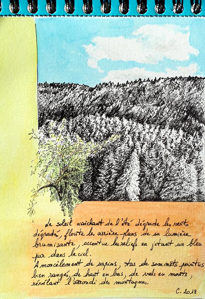 Parmi les champs pleins d’herbe et parmi les grands bois.